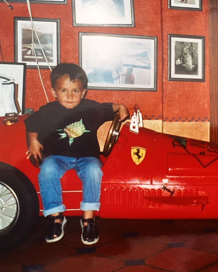 «Ребенком я был этим одержим. Одно из моих первых слов – «Феррари», которое я произносил «Рари». «Феррари» и еще выхлопные трубы – мне очень нравилось смотреть на эти четыре трубы, которые я называл «смоукс». Так что я постоянно кричал «смоукс» или «Рари».