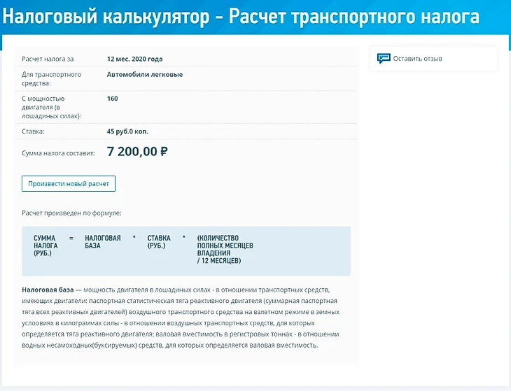 Водителю не требуется самостоятельно рассчитывать сумму налога. Расчеты производит налоговая служба на основе данных о мощности двигателя машины, а также сроках эксплуатации автомобиля. Для расчета суммы налога можно воспользоваться специальным онлайн-кинотеатром на сайте налоговой службы.
