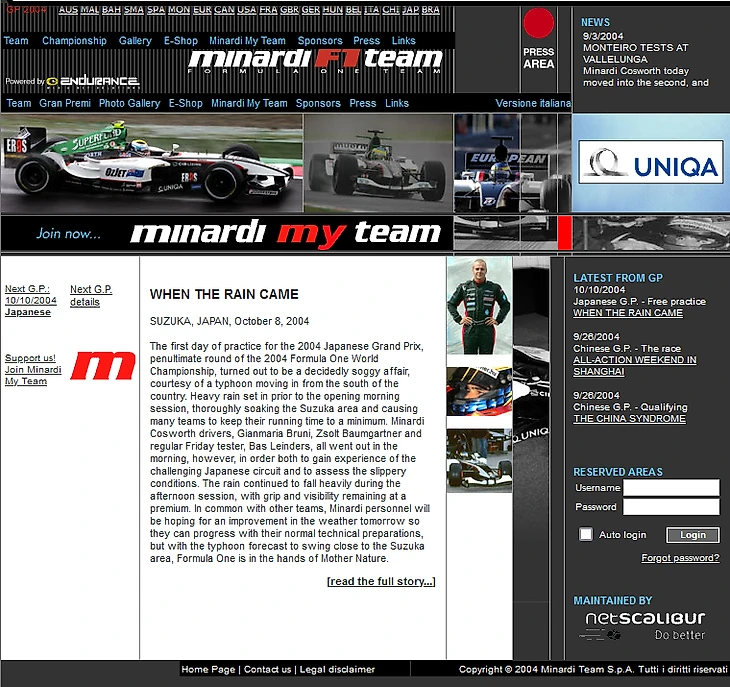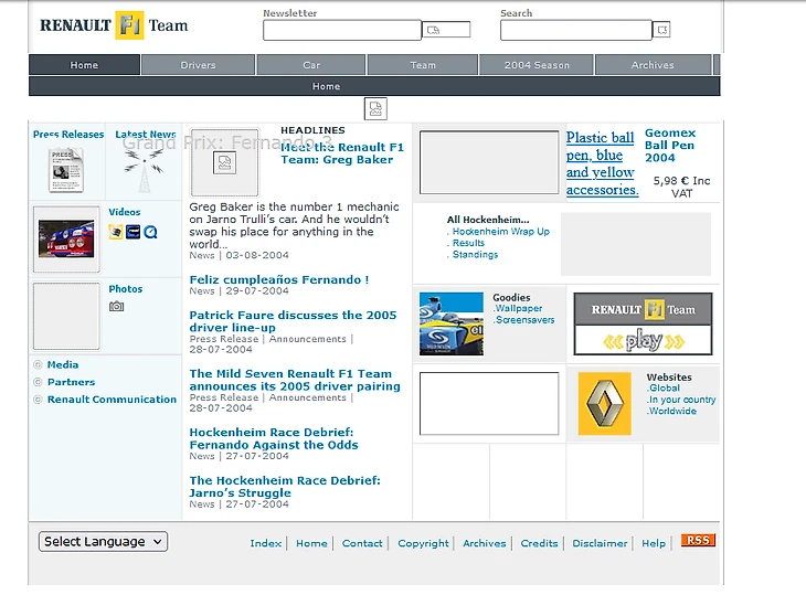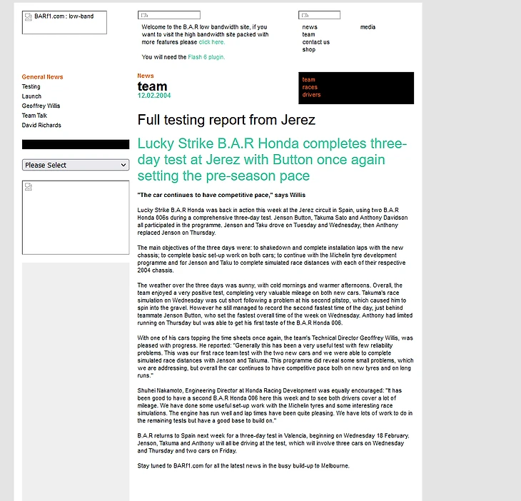 Как выглядели сайты команд «Ф-1» 20 лет назад? Да, в 2004-м уже у всех были!