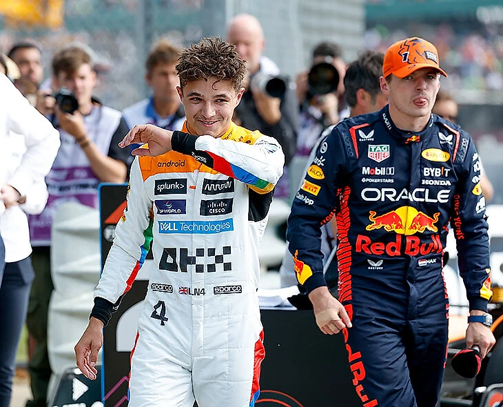 И ведь правда, достаточно вспомнить звездные гоночные перфомансы Норриса в 2023-м, чтобы понять, почему «Макларен» в него так верит. Например, феноменальный прорыв в Мексике, названный одним из лучших выступлений современной «Ф-1», или титаническая оборона против Хэмилтона в Великобритании, или умнейшая совместная работа с Карлосом Сайнсом по обороне подиума в Сингапуре.