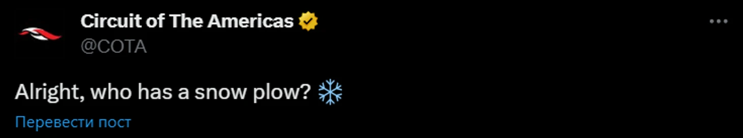 Трек для «Ф-1» в Техасе замело снегом! Как?!