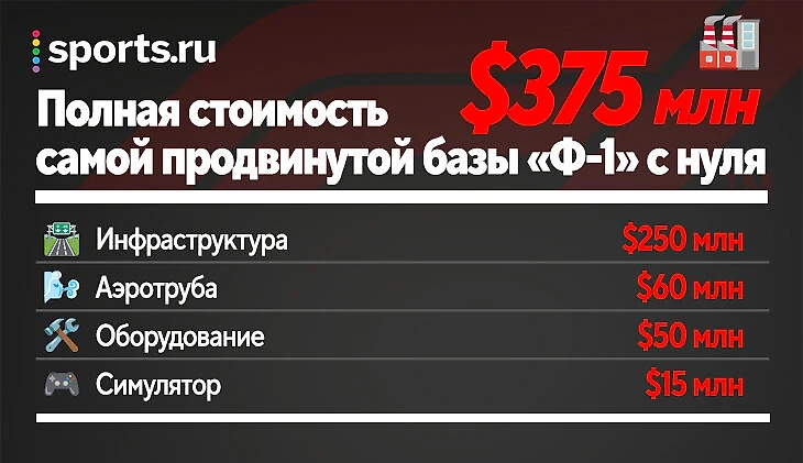 При строительстве базы с нуля и чистого поля, конечно, можно все сделать проще и сразу же лучше – но сильно дешевле точно не выйдет. Все новости и инсайды об обновлениях и расширениях баз как раз и дают цифры подобного порядка: например, «Мерседес» на одно лишь строительство новых мощностей заложил $38 млн и планирует еще 50 млн на оборудование и обустройство, а новая супербаза «Астон Мартин» оценивается в $250 млн.