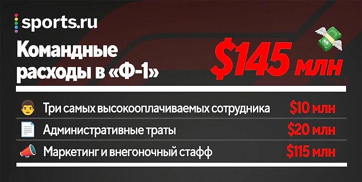 А вот всем остальным занимается маркетинговый отдел – один из самых важных в составе любой команды «Ф-1»! И затраты на него соответствующие: со всем кейтерингом, обслуживающими структурами и тратами на организации особенных событий на Гран-при – $115 млн. И сумма еще снизилась со 134 млн из-за падения премиальных за успехи – в принципе, в первый сезон у команды с нуля поводов для бонусов не будет, так что можно брать по нижней границе.