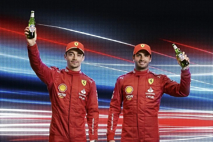 На презентации партнерства с производителем безалкогольного итальянского пива Peroni (в прошлом году спонсировала «Астон Мартин») Скудерия засветила комбинезоны – и да, цвет весьма предсказуем: