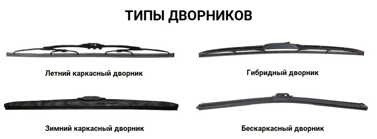 Современные щетки стеклоочистителя подразделяются на 3 вида: каркасные (классические), бескаркасные и гибридные. Каждый из вариантов имеет свои преимущества и недостатки, которые важно учитывать при выборе. Ниже каждый из видов дворников будет рассмотрен более подробно.