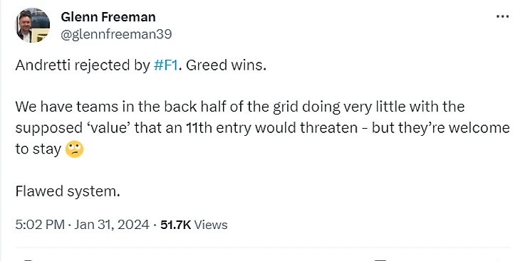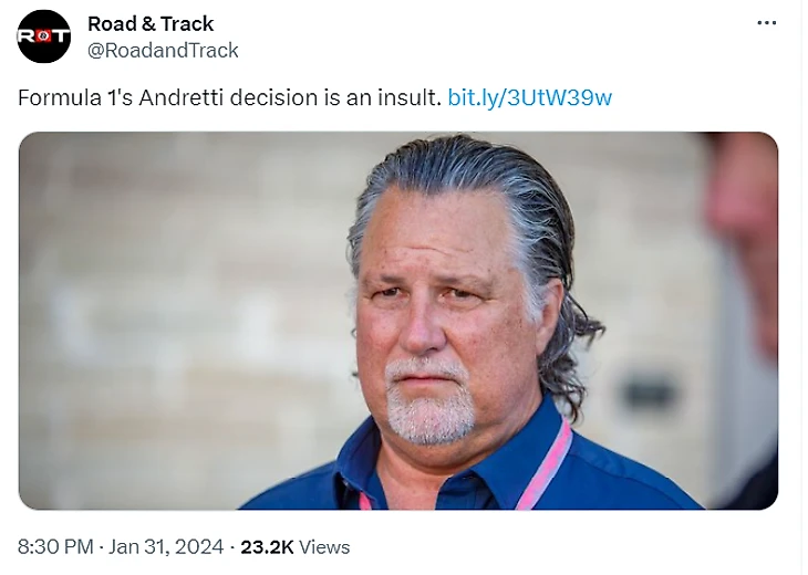 «Андретти-Кадиллак» ознакомилась с информацией, предоставленной ФОМ (Formula One Management, владельцы коммерческих прав) и категорически не согласна с ее содержанием.