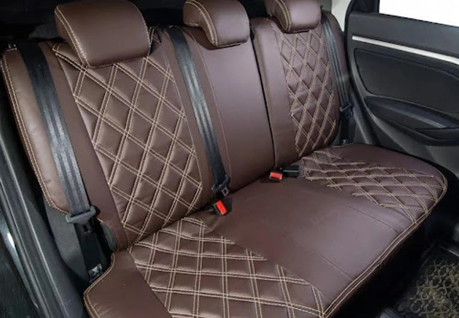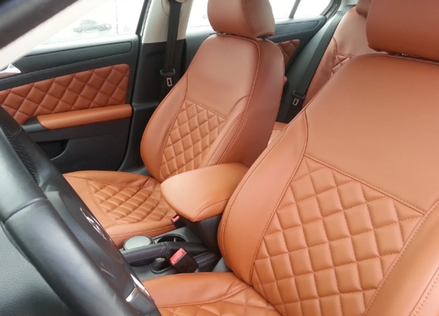 Для производства чехлов для сидений с подголовниками из натуральной или искусственной кожи часто используется коричневый цвет. Это классический сдержанный аристократический цвет, благодаря которому интерьер салона авто выглядит солидно.