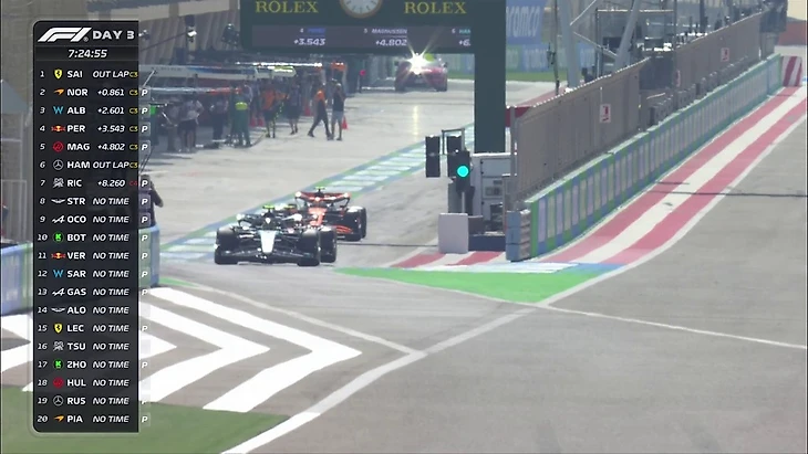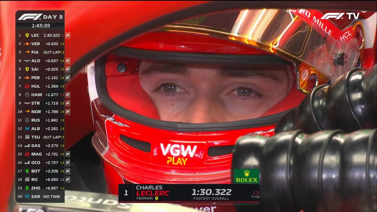 Топ-команды сосредоточились на проведении симуляции гонок - этим заняты Норрис, Леклер, Хэмилтон и Перес. Хотя в случае с Леклером речь скорее про какой-то получасовой отрезок. Напомним, ему скоро уступать место Сайнсу.