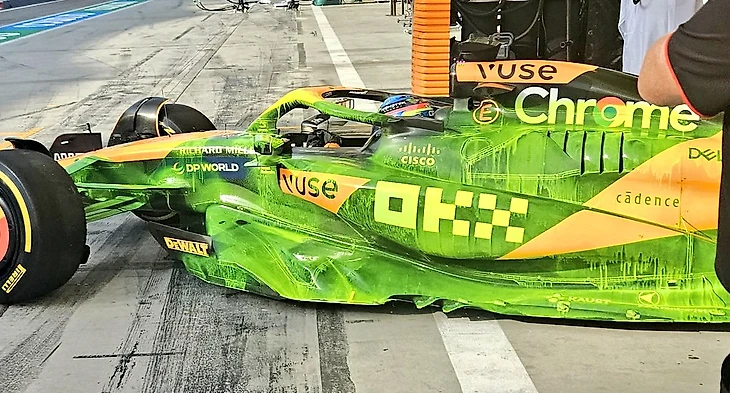Сейчас Пиастри в боксах, но вы только посмотрите, в каком виде он гонял несколько минут назад. В «Макларене» явно не пожалели флоу-виза.