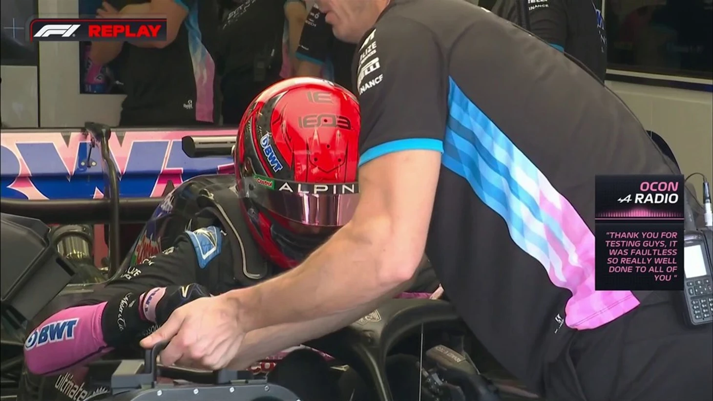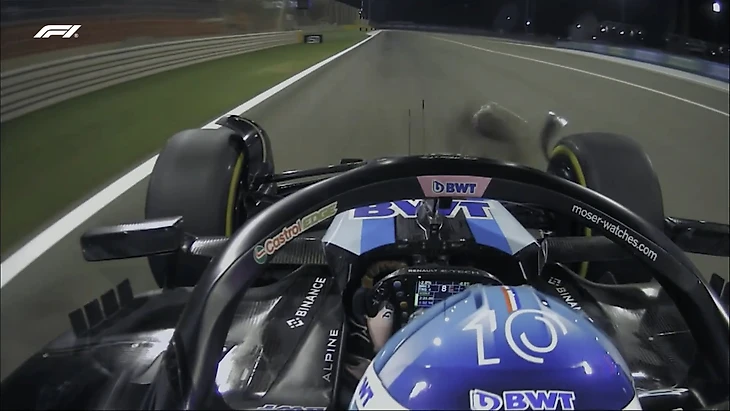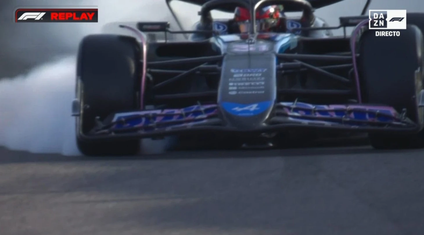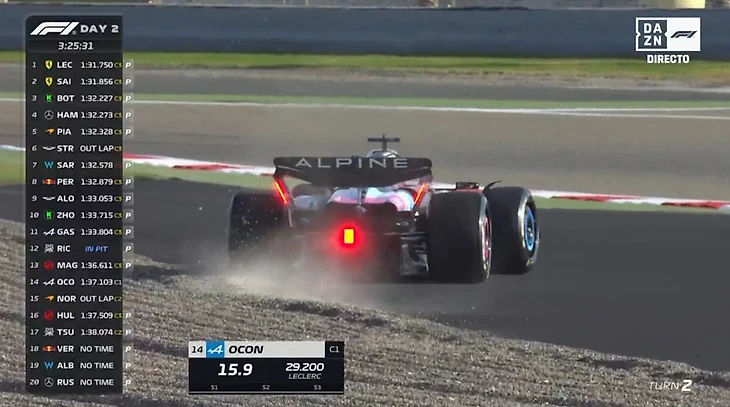 Пока рассказывали про максималку, Эстебан ошибся в первом повороте. Пилот «Альпин» уже вернулся в боксы.