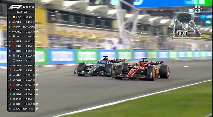Расселл и Леклер слегка оживили тесты под конец предпоследнего часа. Скоро, вероятно, будут еще испытания старта и рестарта.