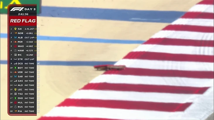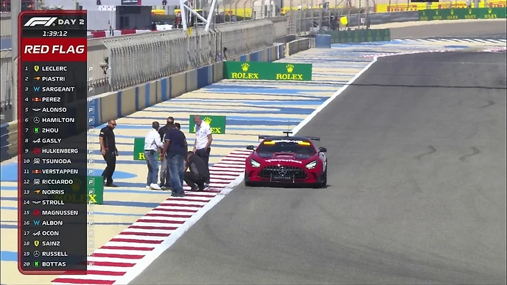 Пилот «Заубера» тоже проехал быстрый круг на С4 и показал третье время - в 0,325 секундах от Шарля. А сразу после начались тесты систем - уже испытали режим виртуальной машины безопасности, а сейчас проверяют красные флаги.