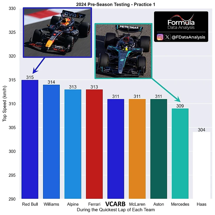 Команды активно работают над своими программами на трассе, но чего-то особо интересного не происходит. А вот эксперты продолжают радовать анализами первого дня тестов - в частности, сравнением лучших времен первой тройки (Ферстаппена, Норриса и Сайнса). Макс был быстрейшим на протяжении 3/4 круга (на 1,1 секунды быстрее Норриса; слабостей у «Ред Булл» по выступлениям №1 не заметили), Норрис лучше всех справился с торможением в четвертом повороте, а Сайнс достиг наибольшей скорости перед входом в 14-й поворот (на 1 км/ч быстрее Макса и на 4 км/ч быстрее Норриса).