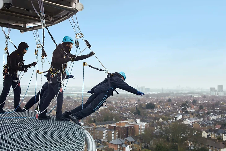 Такая прогулка (общая длительность мероприятия – 90 минут) будет стоит 39 фунтов. Ну а если и это не вызовет у вас выброс адреналина, то за дополнительные семь фунтов вас скинут вниз на землю, конечно, с помощью троса. Выглядит это так.