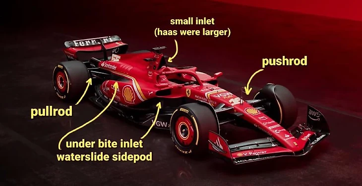 Однако… Техэксперт Крэйг Скарборо с первого же взгляда подсветил «консервативные» места болида – фактически концептуально унаследованные у машины 2023-го.