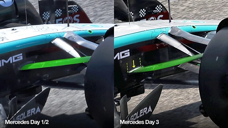 «Управлять прошлогодней машиной было действительно сложно. Ни я, ни Льюис не чувствовали уверенности за рулем того болида. Казалось, что он может укусить тебя буквально в каждом повороте. Теперь же у нас появилась возможность атаковать в среднескоростных и высокоскоростных поворотах, не рискуя срывом задней оси, – пояснил Джордж Расселл. – Мы чувствуем, что сделали действительно большой шаг вперед с точки зрения стабильности поведения болида.