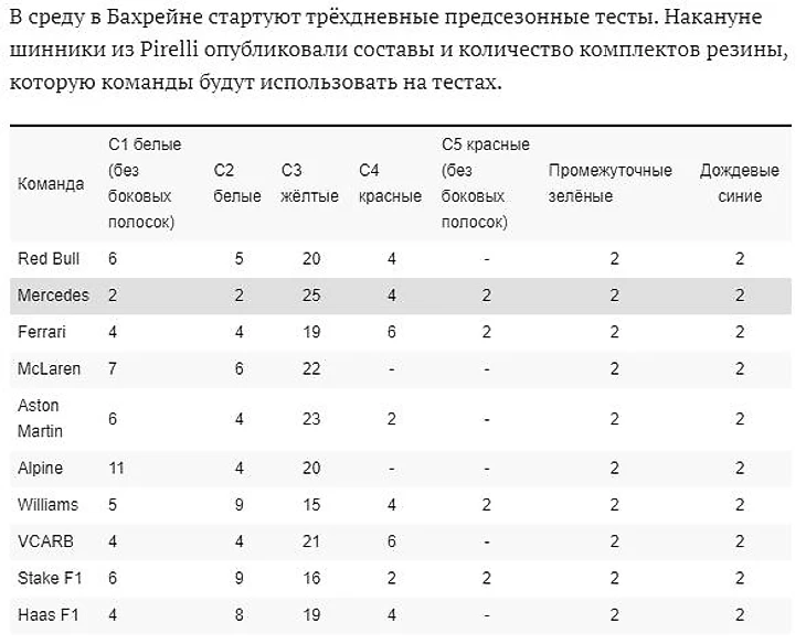 Перед стартом тестов командам пришлось сделать два выбора - как пилоты поделят между собой 3 дневных и 3 вечерних сегмента и какие типы шин выбрать. Всего на команду выделялось 35 комплектов сухих шин и 2+2 комплекта покрышек для влажных условий. Последнее в пустынном климате Бахрейна не было шуткой - еще 11 февраля первая сессия тестов «Формулы-2» прошла под аккомпанемент дождя. Но ближе к весне погода над Персидским заливом вернулась в привычные сухие кондиции, так что шины с протектором так и остались лежать на полках. По выбору шин можно было сделать выводы о планах команд. Фаворитами оказались комплекты C1, C2 и C3 - три самых жестких версии, которые будут представлены на первом этапе сезона. McLaren и Alpine вообще отказались от более мягких типов шин, причем французы набрали в два раза больше составов C1, чем остальные - было видно, что команда планирует работать на длинных сериях, контролируя надежность и выносливость.