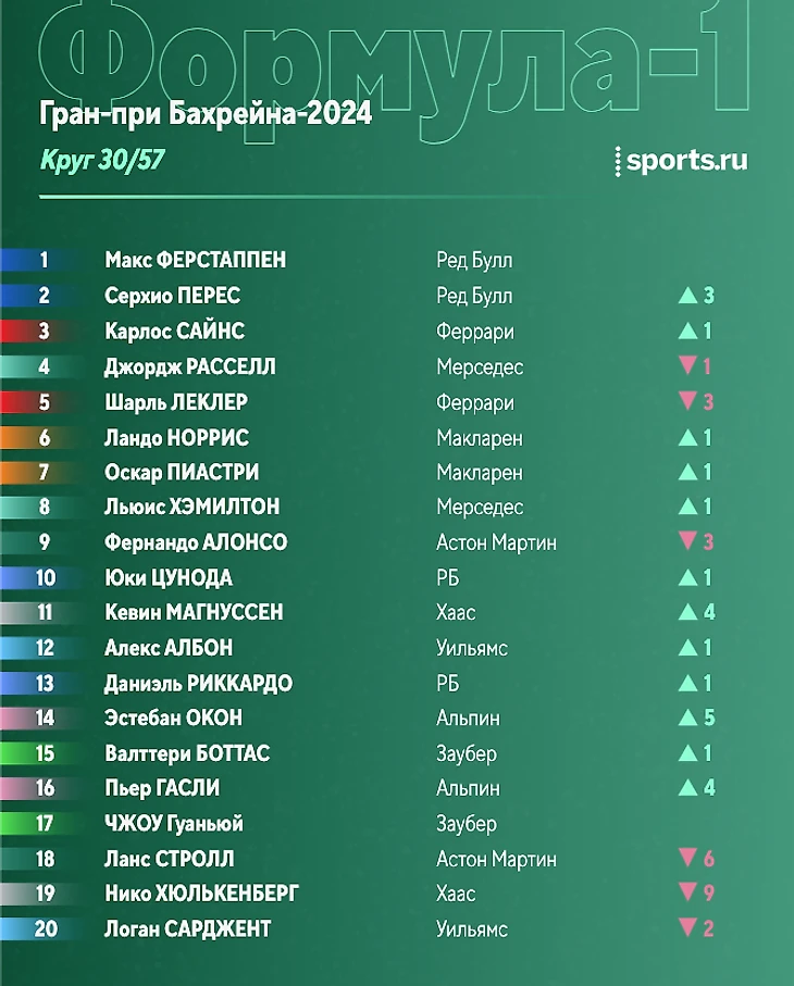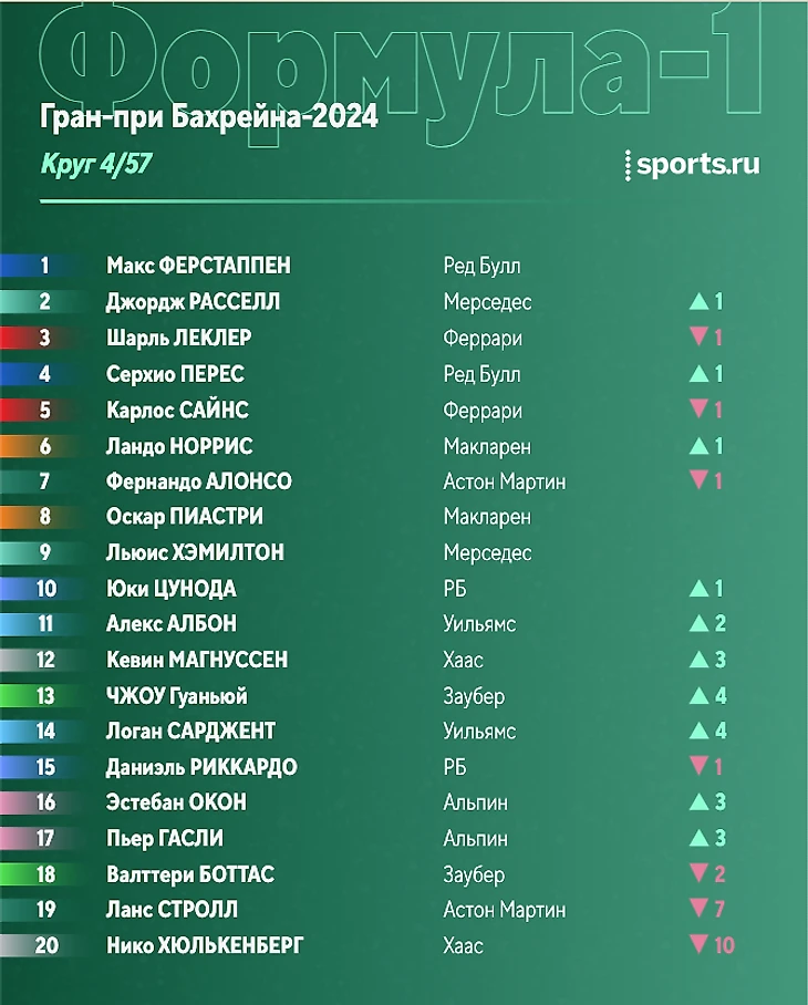 Не останавливались пока только пятеро: Макс, Сайнс, Алонсо, Цунода и Албон.