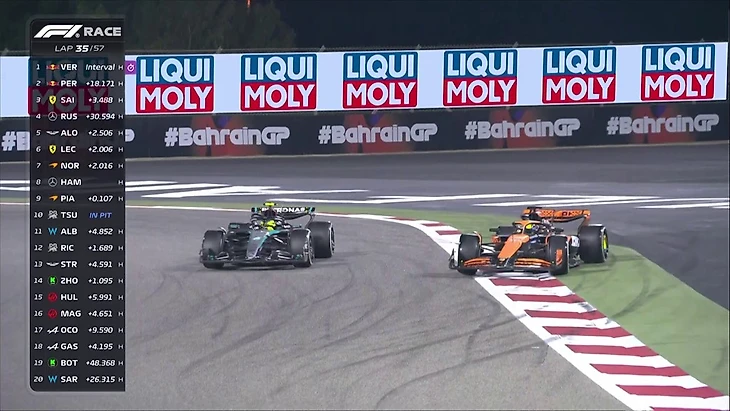 У Хэмилтона, который сегодня чуть позади, своя борьба - с двумя «Макларенами». Льюис в 4,5 секундах позади Норриса и на 4 секунды опережает Пиастри. Пока активных действий здесь не предвидится, но скоро может стать интересно.