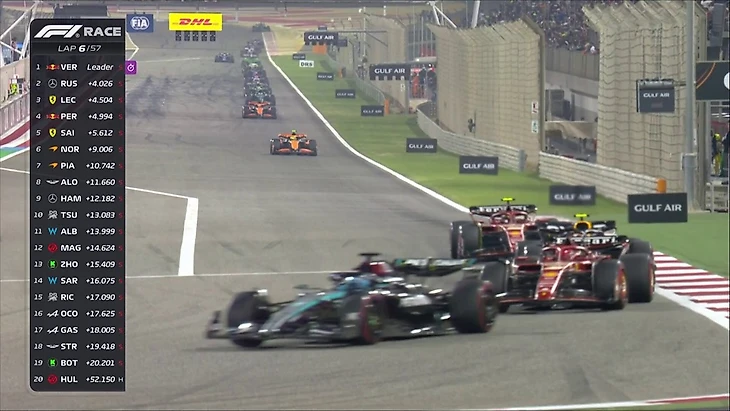 Ферстаппен отрывается, а вот позади интересно - Леклер более-менее стабилизировал темп и держится в 0,5 секунды от «Мерседеса». При этом позади еще в 0,5 секундах каждый едут Перес и Сайнс.