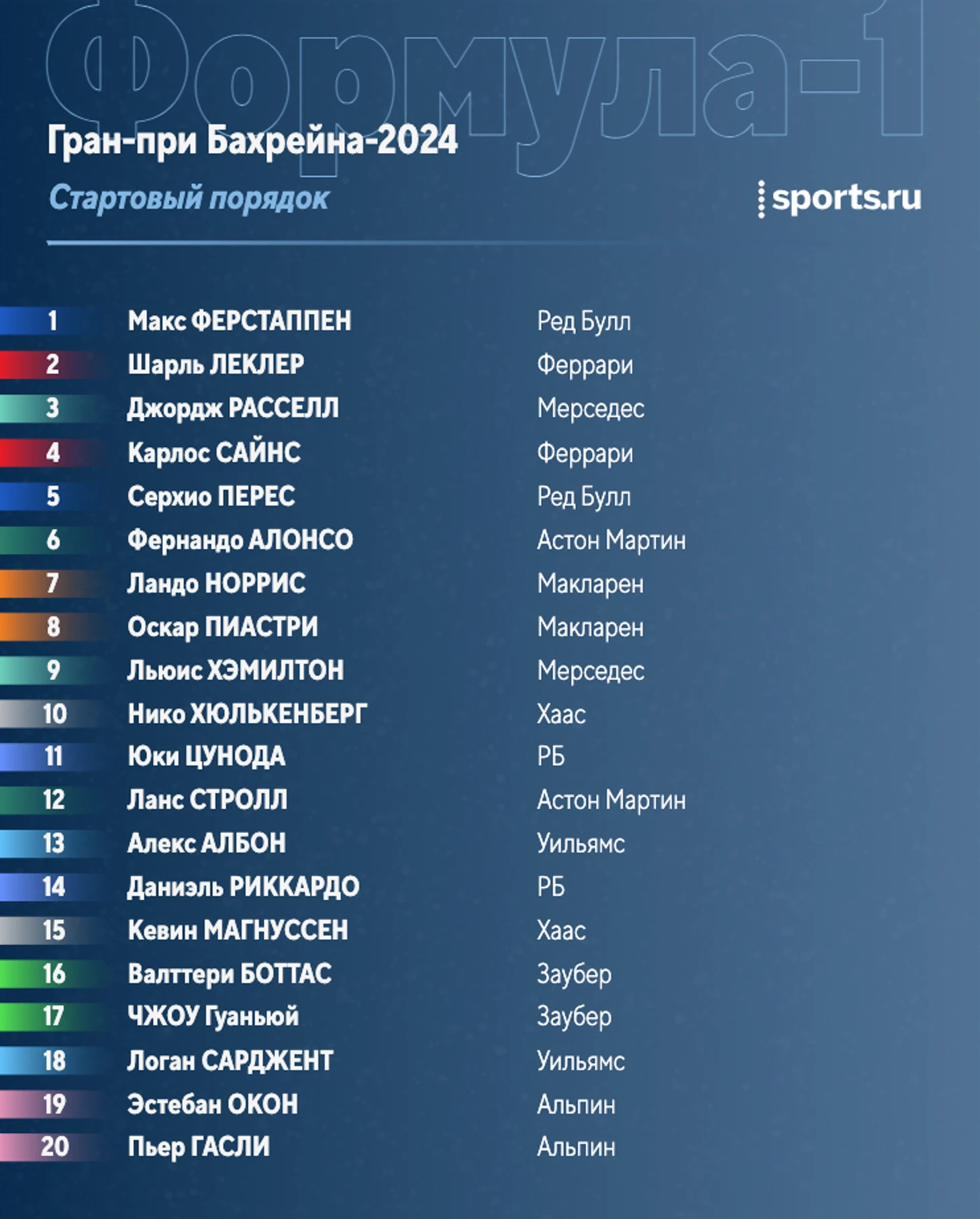 В субботу, 2 марта состоится Гран-при Бахрейна, первый этап «Формулы-1» сезона-2024.