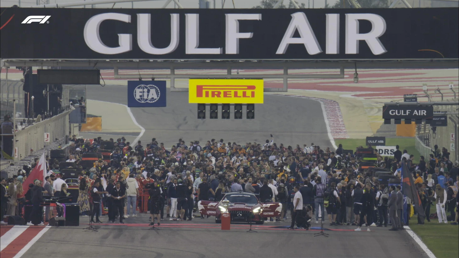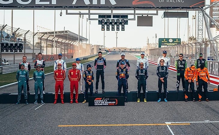 Гонщики заканчивают прогревочный круг и выстраиваются на стартовой решетке. Все готово к началу Гран-при Бахрейна и старту сезона-2024!