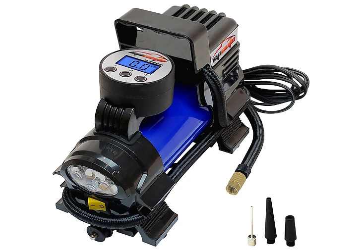 Компрессор EPAuto потребляет энергию непосредственно от автомобильного источника питания 12 В, что делает его очень удобным, когда вы находитесь в дороге. Девайс оборудован автоматическим отключением, что предотвращает чрезмерную инфляцию. На ярком дисплее отображается информация о давлении в шине в кПа или фунт/кв. дюйм. На компрессор установлен фонарик. Это позволяет освещать шину, которую вы планируете накачать. Особенно полезна опция в вечернее и ночное время. Нельзя не отметить и компактный размер устройства. Из недостатков можно отметить, что есть рекомендация по запрету накачивания шин LT.