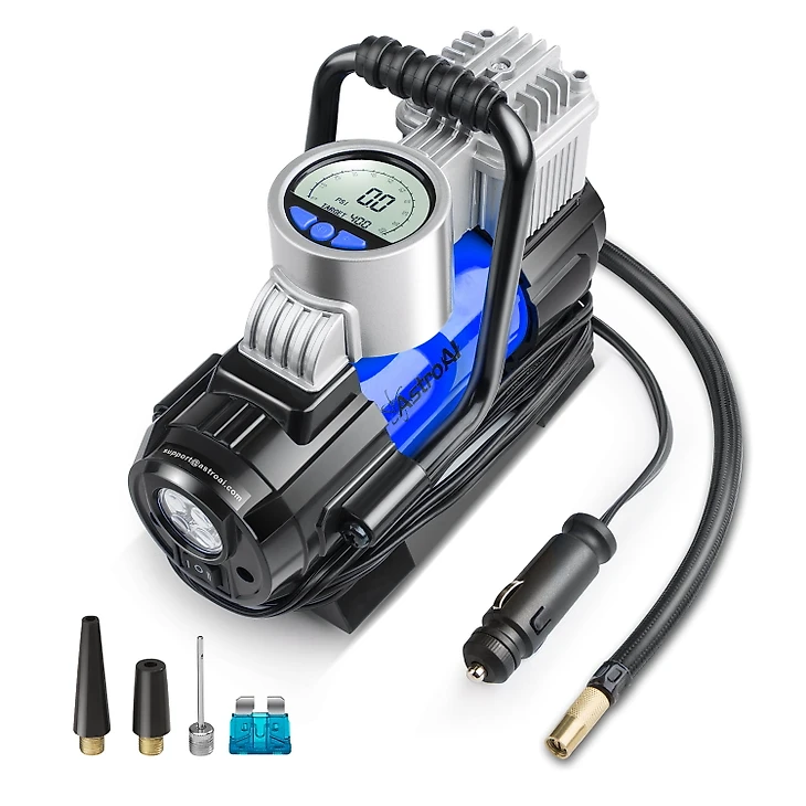 При накачивании шин всегда возникает одинаковая проблема. После завершения работы и отключения шланга компрессора, давление в шине незначительно снижается. В случае с компрессором AstroAI, такого не случится. Автоматическая система дает конечное значение на 05-1,5 фунта на квадратный дюйм выше, чем установленный параметр. По словам производителя, после удаления соединительного клапана происходит потеря воздуха и при закрытии золотника, устанавливается более близкое значение к заданному параметру.