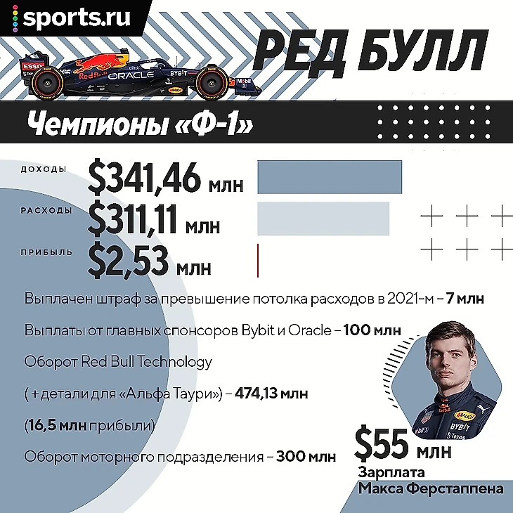 А ведь «Ред Булл» еще и как чемпион «Ф-1» должен получать огромные призовые – первое место забирает 14%, в 2023-м, судя по последнему финотчету серии, распределят $1,2 млрд – следовательно, на счета команды упадут еще 168 млн только за гоночные достижения.