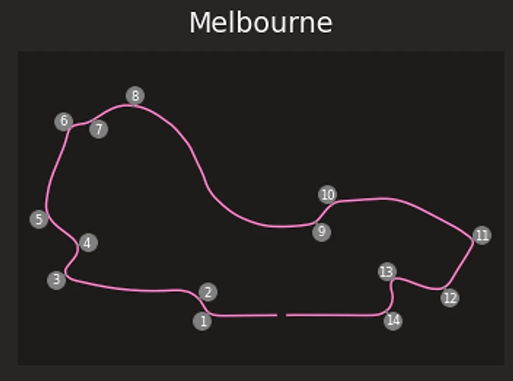 Для наглядности и ориентации можно ознакомиться со схемой трассы автодромом Альберт Парк.