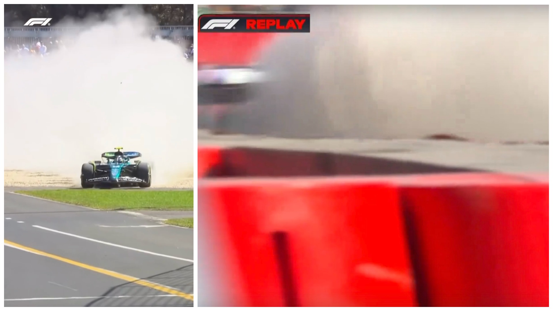 «Когда во время уикенда «Формулы-1» на Гран-при Австралии машина вылетает с трассы прямо перед тобой, в буквальном смысле, и все обломки камней летят тебе прямо в глаз 🤦♀️🏎️