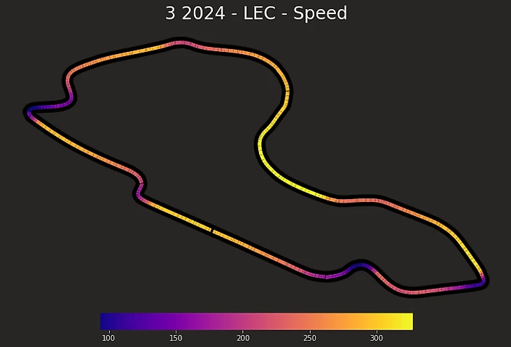 Визуализируем распределение скорости Шарля Леклера, установившего быстрейший круг на Гран-при Австралии.