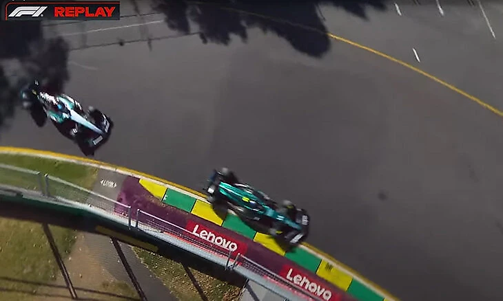 Алонсо объяснил, что, хотя его план состоял в том, чтобы замедлиться раньше, он немного ошибся и ему пришлось предпринять дополнительные шаги, чтобы снова набрать скорость. Тем не менее этот маневр создал значительную и необычную скорость сближения машин. [...]