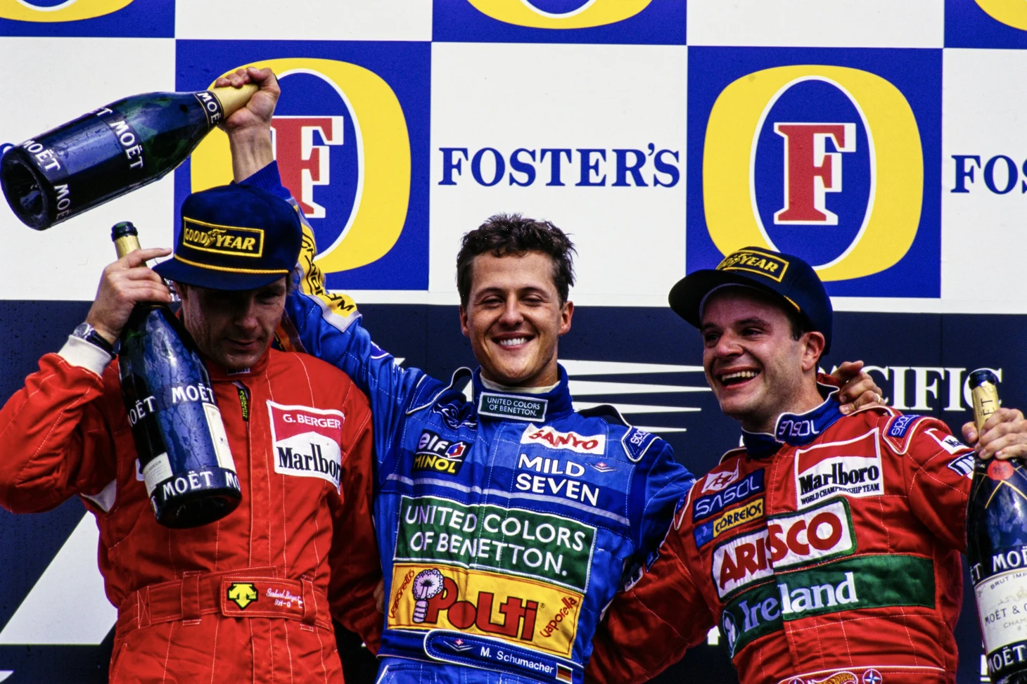 В последующие дни «ФИА» прояснила ситуацию: системы модуляции двигателя были запрещены. Но против «Феррари» не было принято никаких мер. Шумахера все это не волновало. После гонки механики «Бенеттона» схватили его неудачливого партнера по команде Ферстаппена, обвязали его изолентой и высекли за то, что он шел пятым (а должен был стать четвертым), но слишком сильно надавил на новый комплект шин на 55-м круге и выбыл, а Михаэль наблюдал за этим с привычной улыбкой. Со сходом Сенны ему больше не приходилось напрягаться, но даже без подстегивания он ни разу не ошибся, завоевав четвертую победу в карьере. Более того, последние 20 кругов он провел, сидя на небольшом расстоянии позади «Феррари» Бергера, которую он мог бы легко обойти на круг, если бы это действительно имело значение.