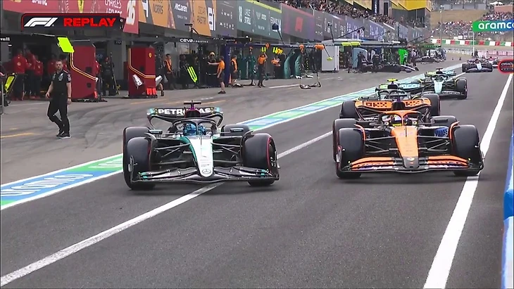 Ох уж эти стычки за позицию на пит-лейн. Вот и сейчас Расселл не поделил дорогу с «Маклареном» и тут же получил жалобу.