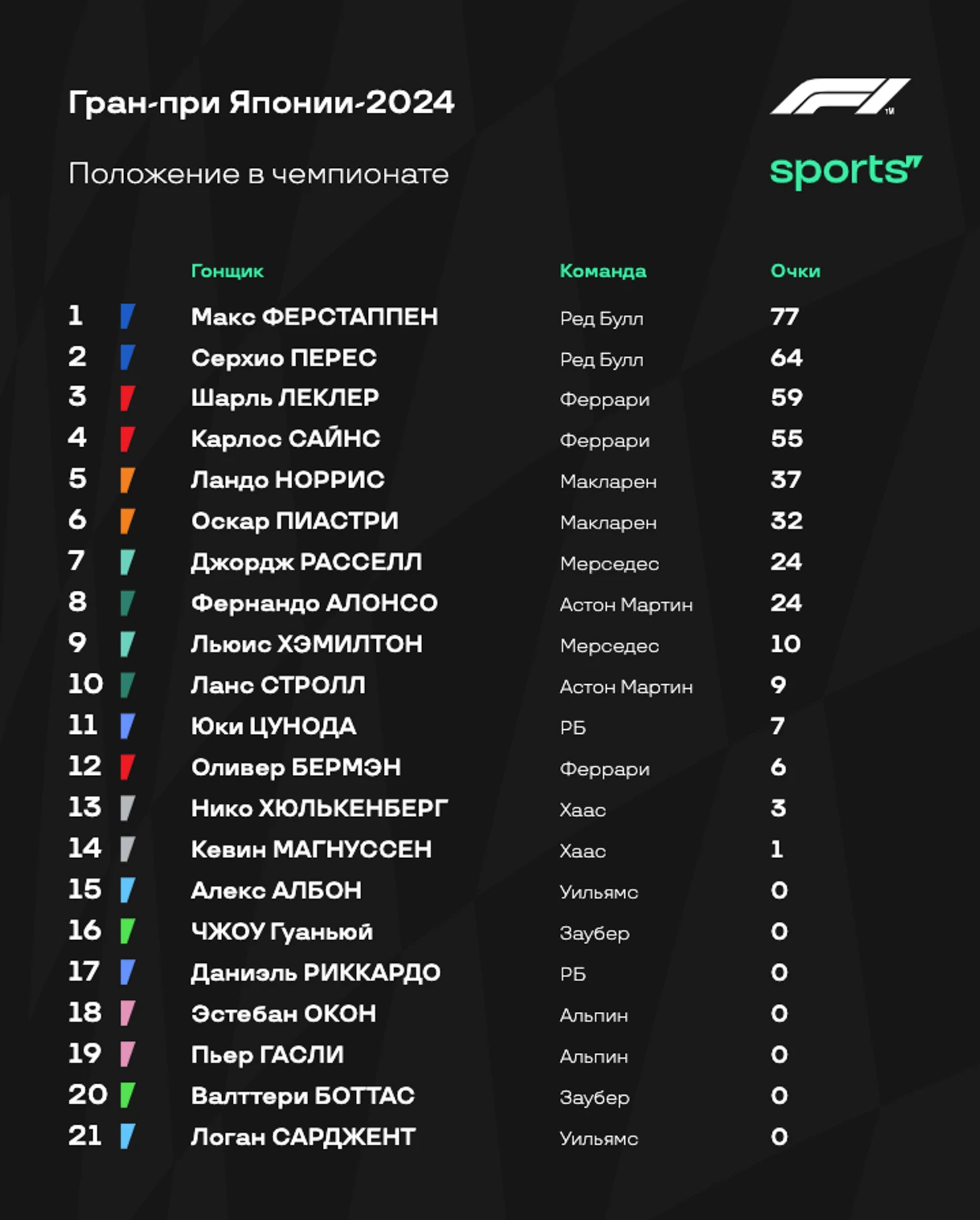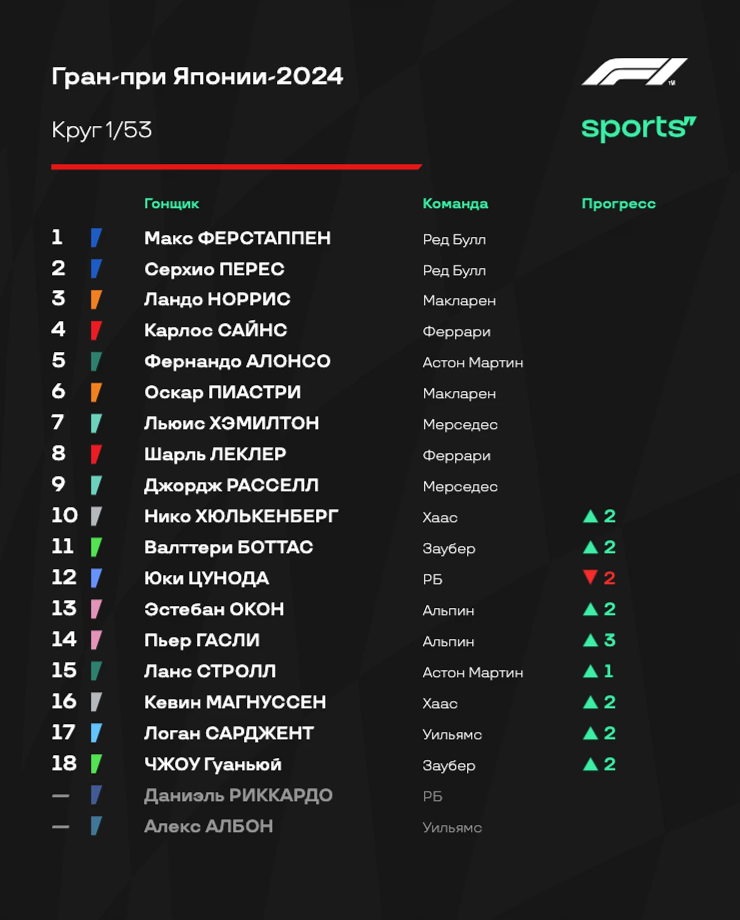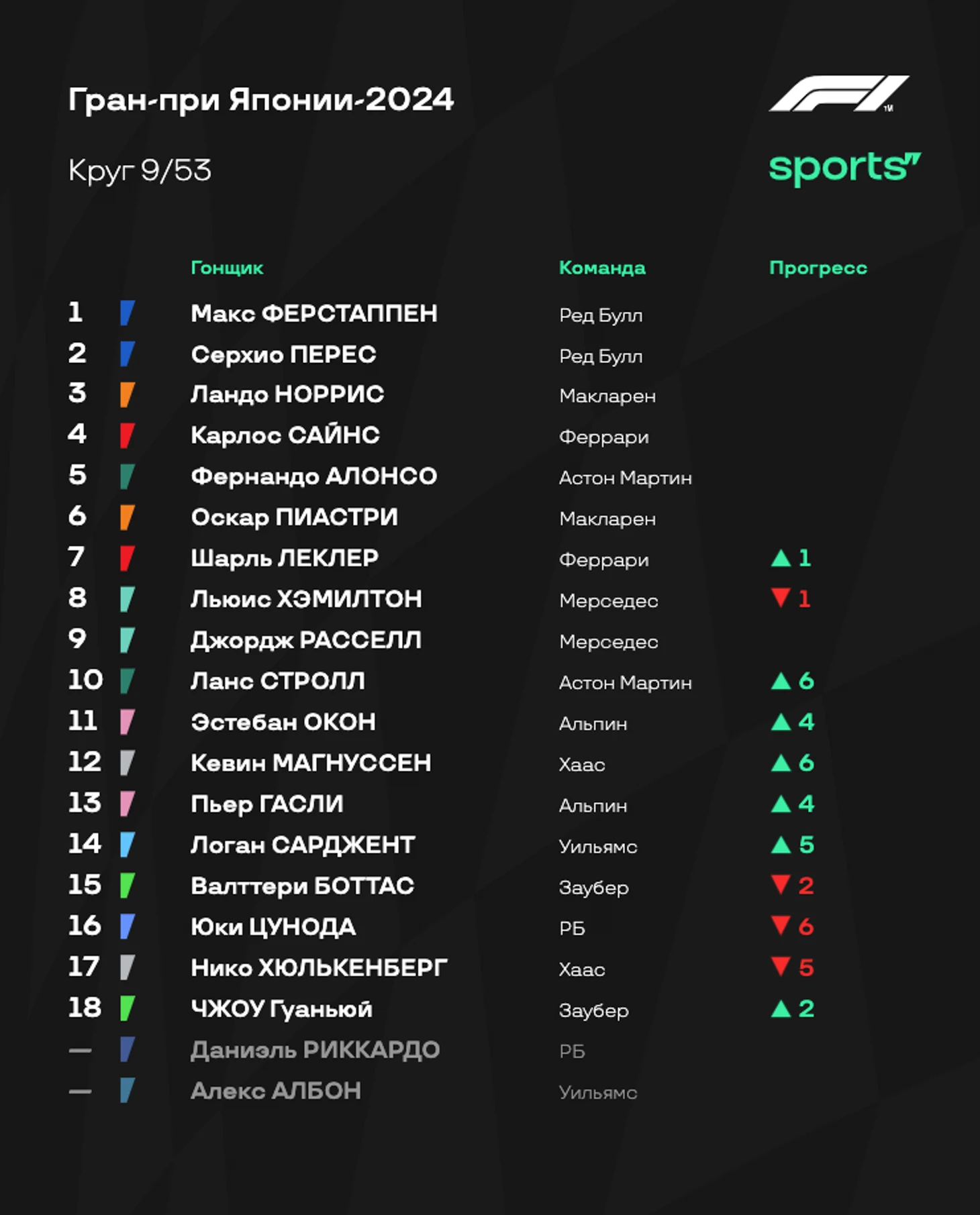 - «Ред Булл» все-таки преувеличивали, говоря о гоночном темпе соперников. В гонке у «быков» не было серьезных проблем относительно других. Ферстаппен практически ни с кем не боролся, Перес уверенно проходил конкурентов после пит-стопов. Так что Гран-при Японии прошел по классике. - «Феррари» на удивление отлично справилась со стратегией: Шарль Леклер с помощью одного пит-стопа смог доехать до четвертого места, Карлос Сайнс на двух пит-стопах все-таки стал третьим. В начале гонки темпа у Скудерии было не так много, но потом красный болид здорово вкатился - видимо, у итальянцев и вправду есть проблемы с прогревом резины. Зато потом отличный и стабильный темп. - «Макларен» выглядел не очень уверенно. Стратегию пришлось корректировать прямо по ходу гонки - вспомните момент, когда Норриса позвали в боксы из-за подъезжавшего Расселла. Пиастри тоже было тяжело бороться с Джорджем. Очень интересно послушать объяснения команды после финиша - видимо, плохо удалось справиться с износом шин. - Алонсо сделал то, что должно. Фернандо изначально не рассчитывал на супервысокие позиции и говорил о том, как важно хотя бы оказаться впереди «Мерседеса». С этим испанец справился, однако по очкам разница нулевая: шестая строчка принесла «Астон Мартин» 8 очков - и ровно столько же заработали Расселл и Хэмилтон вместе. - Цунода провел очень классную гонку, принеся еще одно очко «РБ» - а это очень важно для команд из второго эшелона чемпионата. И все это на фоне мега неудачного выступления Даниэля Риккардо с аварией на первом круге. В Китае Дэн должен получить новое шасси - но есть ощущение, что это может стать его первой и последней пробой нового элемента. - Жалко «Уильямс». Команда терпит невероятные убытки. Авария Албона в практиках Австралии и гонка одним болидом, авария Сарджента в пятницу в Японии и вот спустя пару дней еще одна авария. Команда отчаянно пытается вырваться из кризиса, но обстоятельства продолжают ее топить.