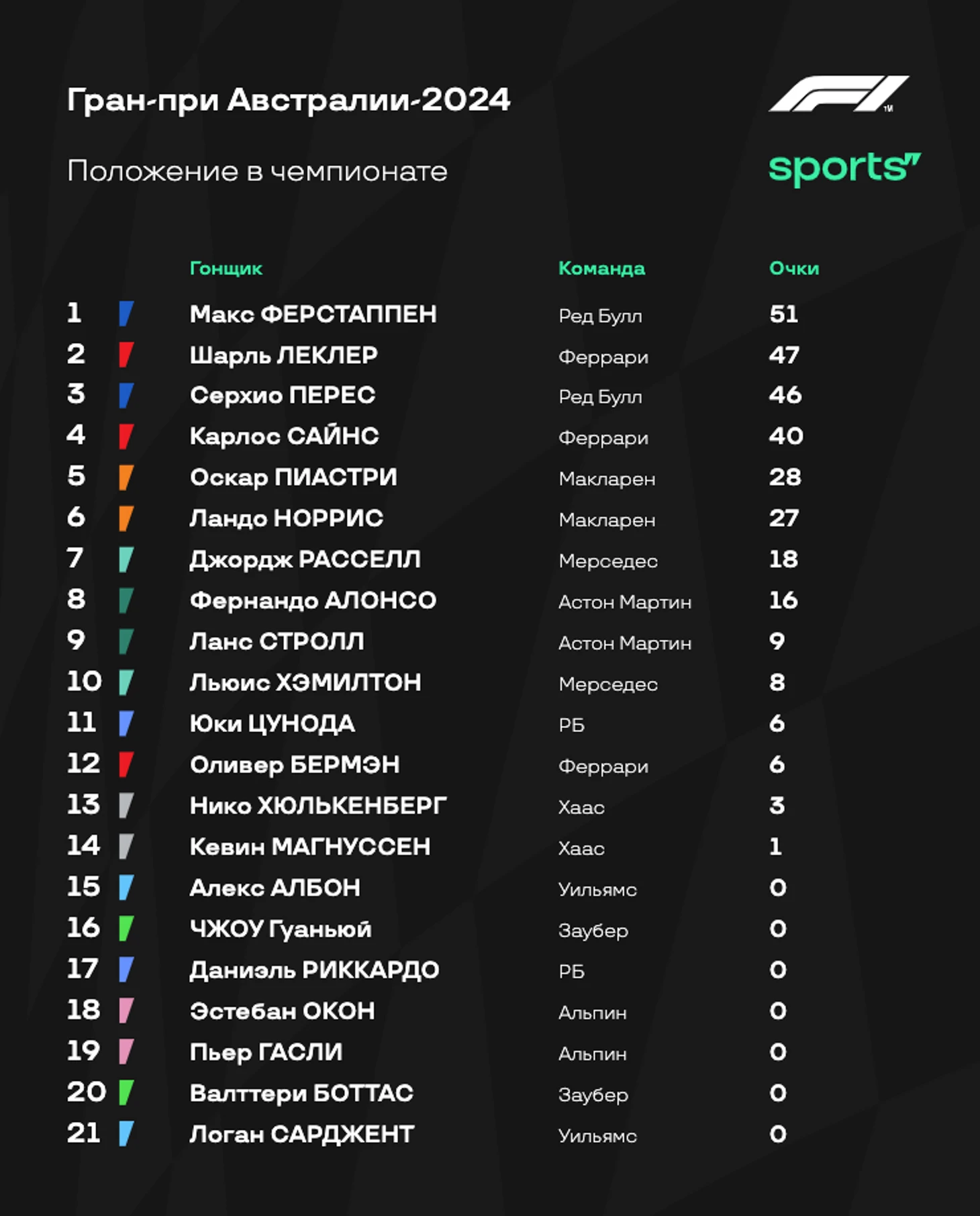 Ситуация в личном зачете после Австралии: