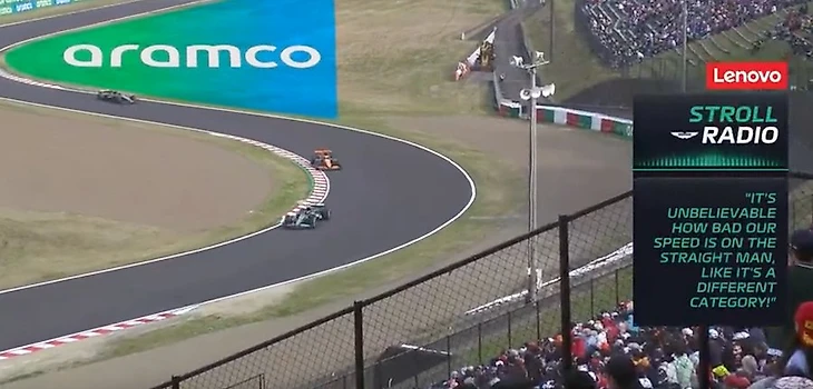 Ланс едет на «софте» и пытается догнать Юки Цуноду в борьбе за десятое место. Но какие эмоции испытал пилот «Астон Мартин» от скорости на прямых - казалось, у него истерика: «Невероятно, насколько ужасна наша скорость на прямых. Словно мы в другой категории!»