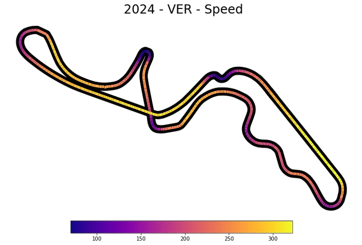 Визуализируем распределение скорости Макса Ферстаппена, взявшего быстрейший круг на Гран-при Японии, на этом самом круге.