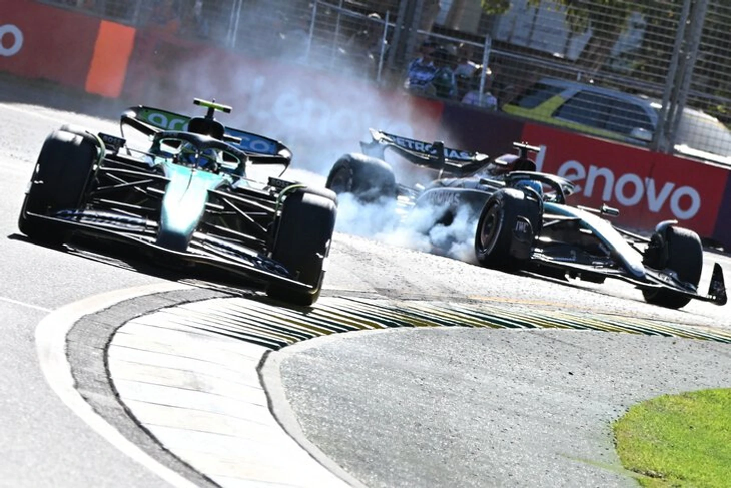 Из-за инцидента на Гран-при Австралии, где испанец защищался от Расселла на последних кругах, сбросил скорость в одном из поворотов задолго до обычной точки торможения (предположительно чтобы выиграть разгон и разорвать дистанцию со слипстримом, но Фернандо списал все на ошибку), а Джордж упустил момент, попал в «грязный воздух» и улетел в стену.