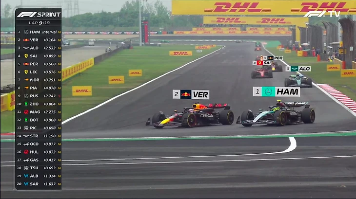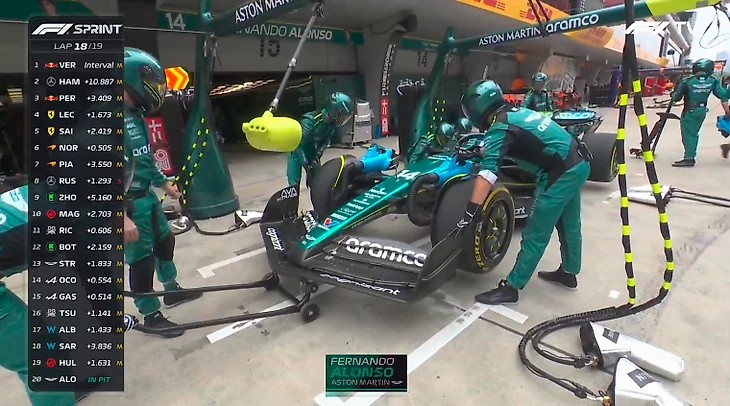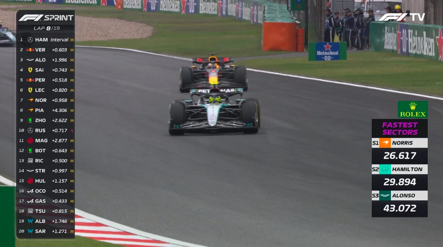 Хэмилтон уверенно летит к победе в спринте, Алонсо - второй, и не менее уверенно держится впереди «Ред Булл».