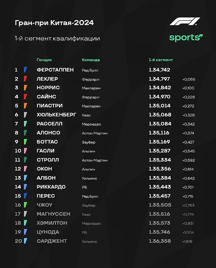Вышла настоящая чехарда времен - все из-за эволюции трека. В итоге Макс - лидер, Леклер - второй, а третий - Норрис. Вылетели Чжоу, Магнуссен, Хэмилтон, Цунода, Сарджент.