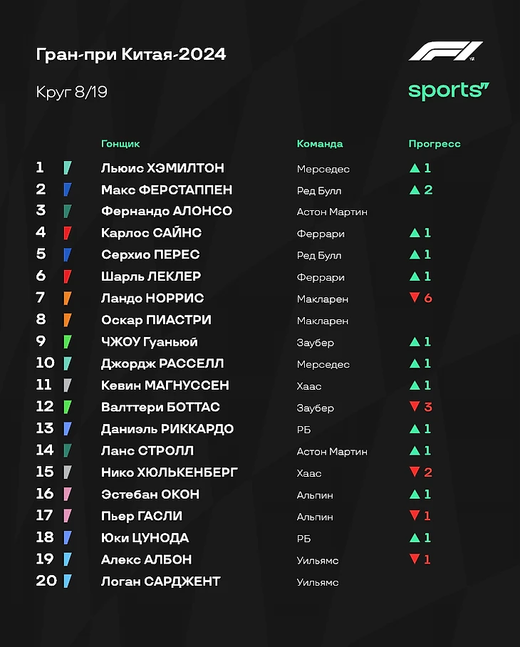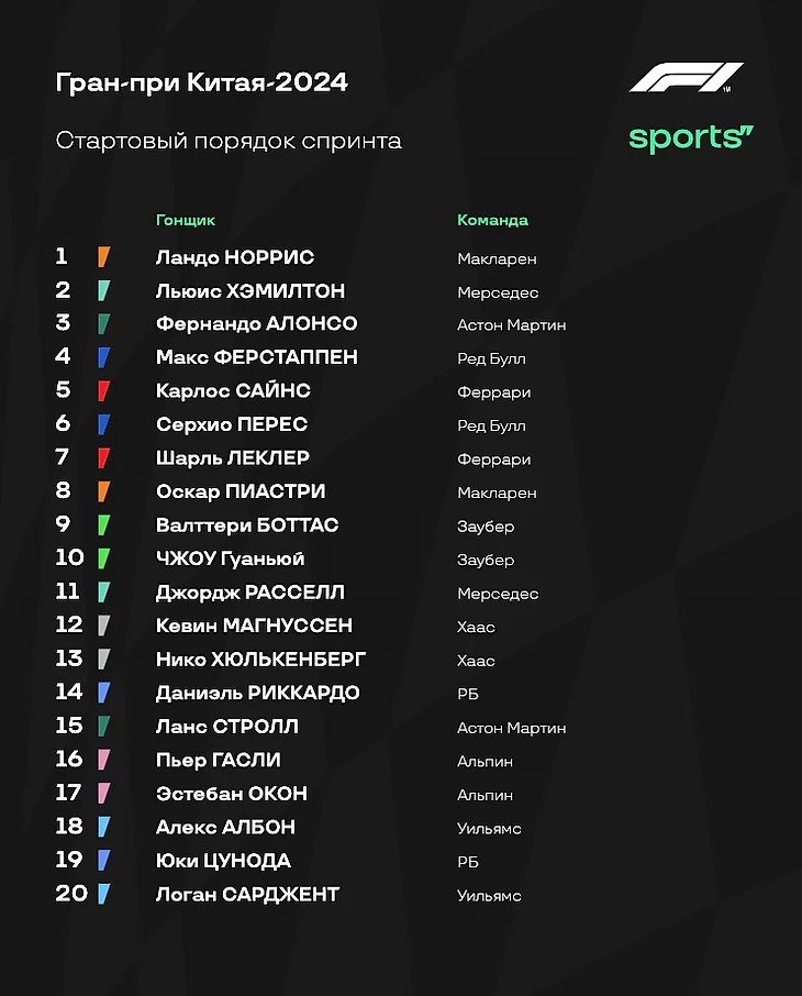 - «Ред Булл» без изменений. После увлекательной квалификации к спринту основной заезд выглядит более привычным: «быки» все так же на первом ряду, Ферстаппен сегодня взял поул без всякой конкуренции. Попотеть пришлось разве что Серхио Пересу в борьбе за второе место. - Фернандо Алонсо продолжает выжимать максимум из машины. Из-за чего сложно оценить адекватно болид «Астон Мартин». По ходу уик-энда в Китае испанец рассказал, что не ощущает остро недостатки машины, как его напарник Ланс Стролл, и может их нивелировать. Видимо, поэтому Алонсо - третий, а Стролл - 11-й. К тому же многое решала работа с шинами - и здесь испанец на опыте победил остальной пелотон. - «Макларен» лучше ожидаемого. Перед стартом Гран-при в команде опасались за свой темп: у оранжевого болида проблемы в медленных поворотах, которых в Шанхае предостаточно. Да и переменчивый ветер не шел на пользу темпу MCL38. Однако даже так квалификация завершилась для «Макларена» вполне успешно. Вопрос в том, что будет в гонке. - «Феррари» провалилась. Похоже, после того как в спринте Сайнс быстро убил резину, в Скудерии решили перейти на более экономные настройки. Однако это «съело» темп, и теперь завтра придется прорываться вперед, если итальянцы планируют финишировать на подиуме. - Пример Хэмилтона доказал, насколько важны настройки. Льюис вполне неплохо держался в спринте, однако в квалификации решил поэкспериментировать - не вышло. Теперь ему предстоит мучаться с болидом целую гонку. - Риккардо наконец уделал Цуноду в квалификации. Но не стоит сразу списывать японца, на результат повлияло сразу несколько факторов: для Юки это первый опыт в Шанхае - да еще и какой! С одной практикой и недостатком данных... Дэн же обожает местный трек из-за суперсложных торможений. У №22 изначально не было шансов против напарника. - И вообще важно помнить, что, помимо Цуноды, на трассу в Китае впервые приехали также Чжоу, Пиастри и Сарджент. Так что если парни и будут сдавать в темпе, то это хоть как-то можно понять. Ведь здесь многое решает умение адаптироваться и включать шины по ситуации.