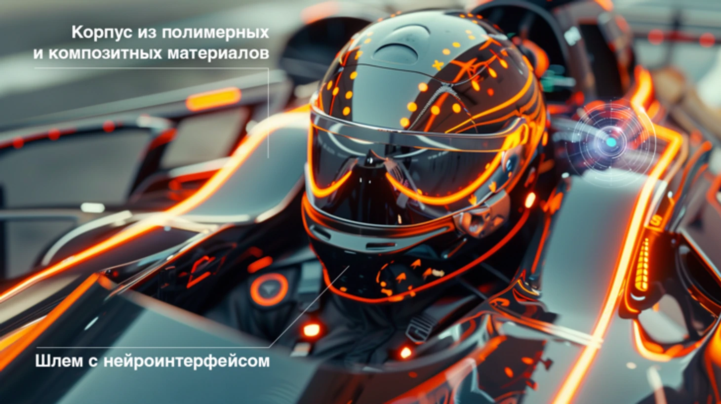 На грани фантазии и реальности проектировалось управление. Заменив приборную панель сенсорами с дополненной реальностью, способными просчитывать и визуализировать оптимальную траекторию прохождения трассы прямо на треке, дизайнеры заодно придумали использовать нейроинтерфейс, встроенный прямо в шлем пилота. С его помощью гонщик смог бы воздействовать на отдельные системы автомобиля силой мысли.
