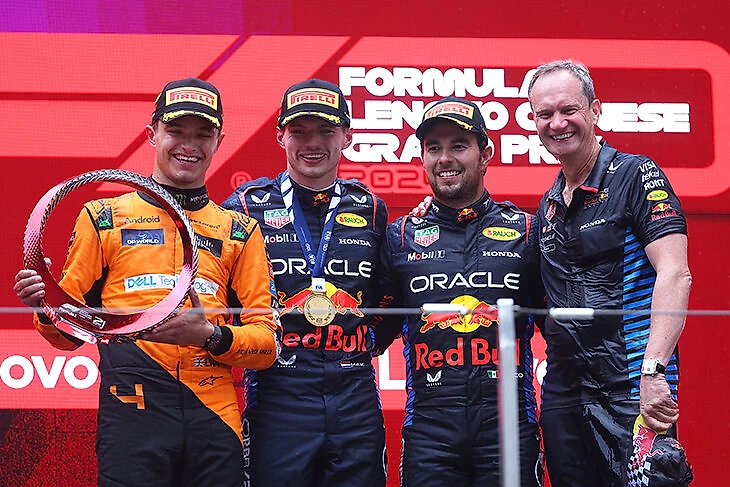 «Макларен» выдал абсолютно максимальный уик-энд: поул для спринта и подиум на неподходящей трассе с постоянным сильным ветром. Команда заранее предупреждала, что ей ничего не светит и даже от «Феррари» могут отстать на полкруга, но мастерская работа в квалификациях и со стратегией позволила Норрису выжить. Только помарка на первом круге в спринте стоила ему двух вторых мест за уик-энд. Заслуженный титул «гонщика дня», это величие – сейчас он перехватывает знамя №2 у Сайнса в пелотоне.