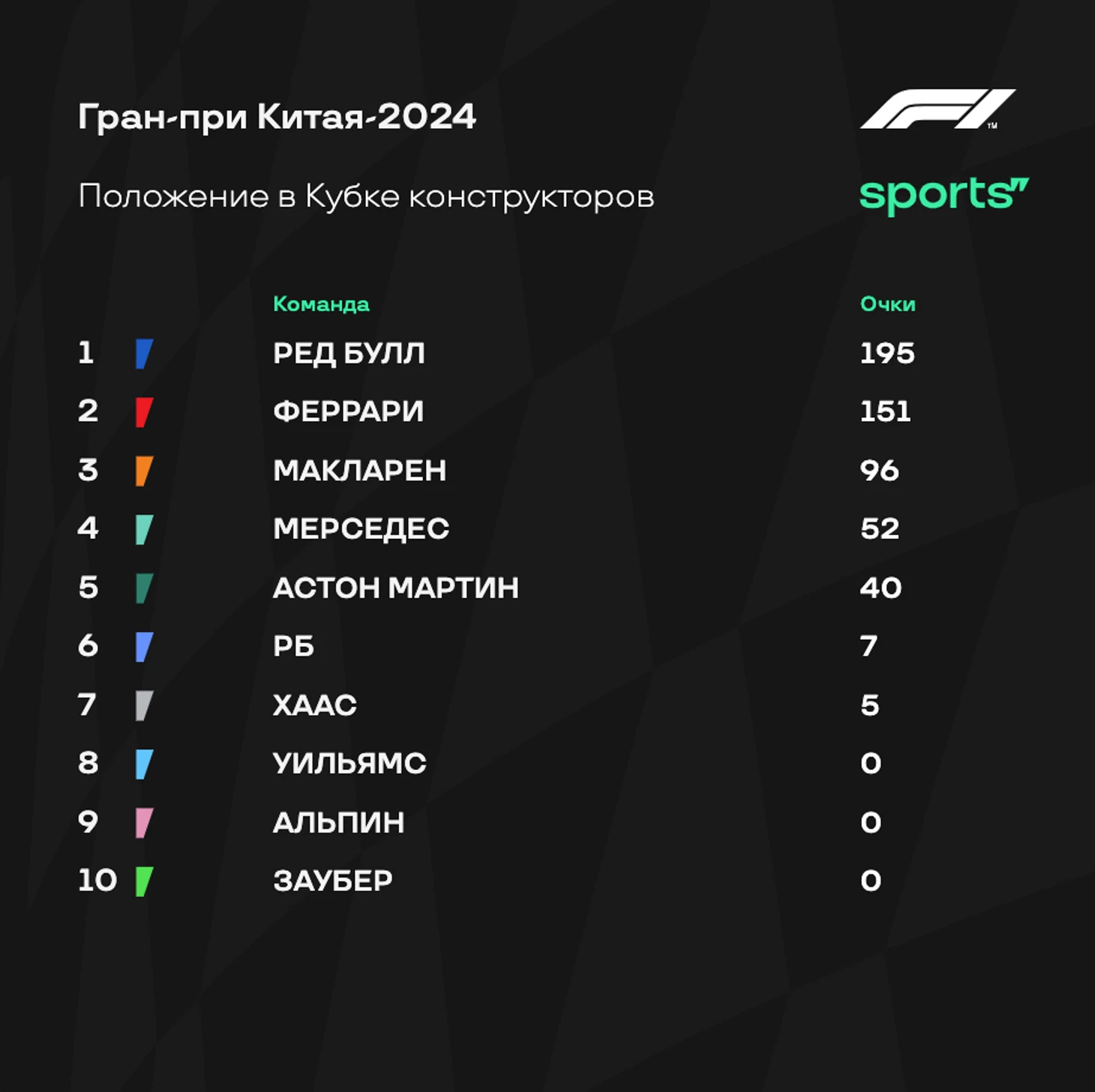 А расстановка в Кубке конструкторов заняла стабильный вид до ближайшей волны апгрейдов – она ожидается на старте европейского сезона в Имоле: