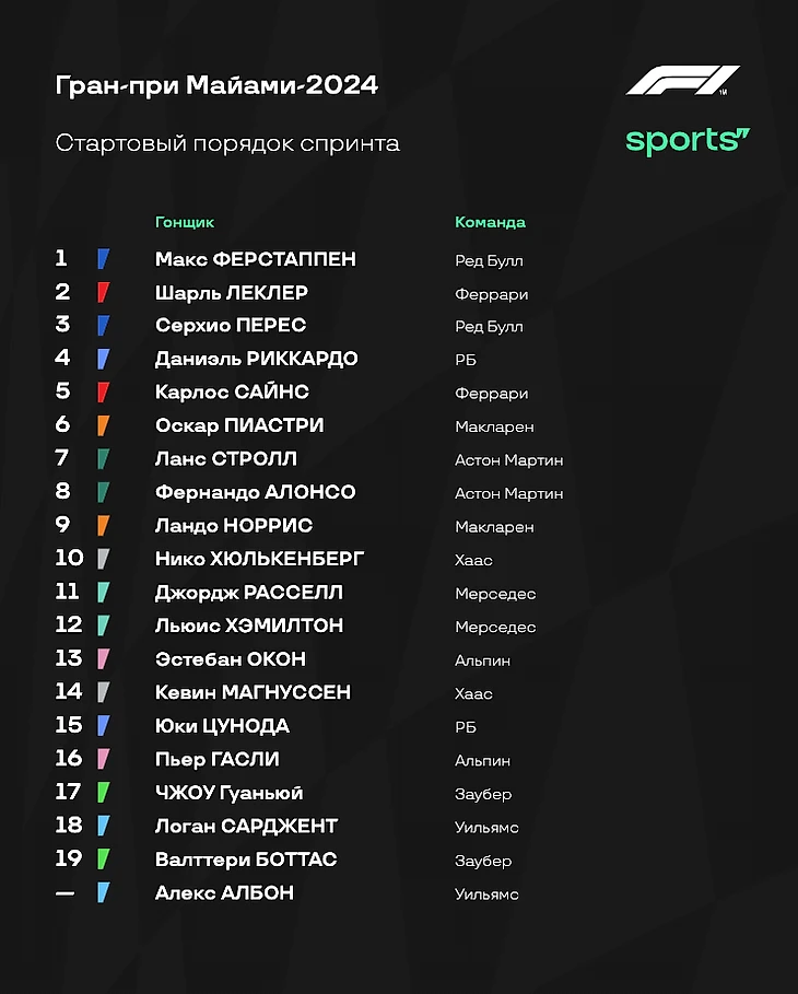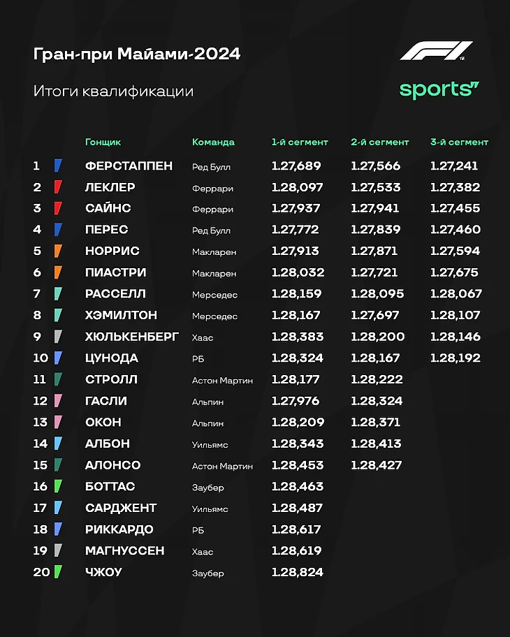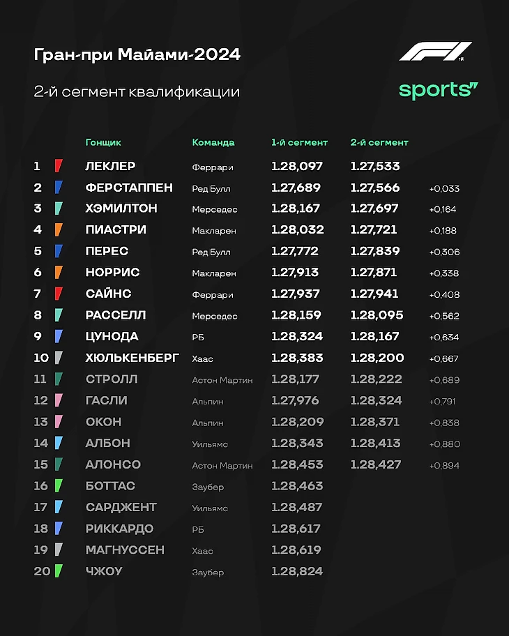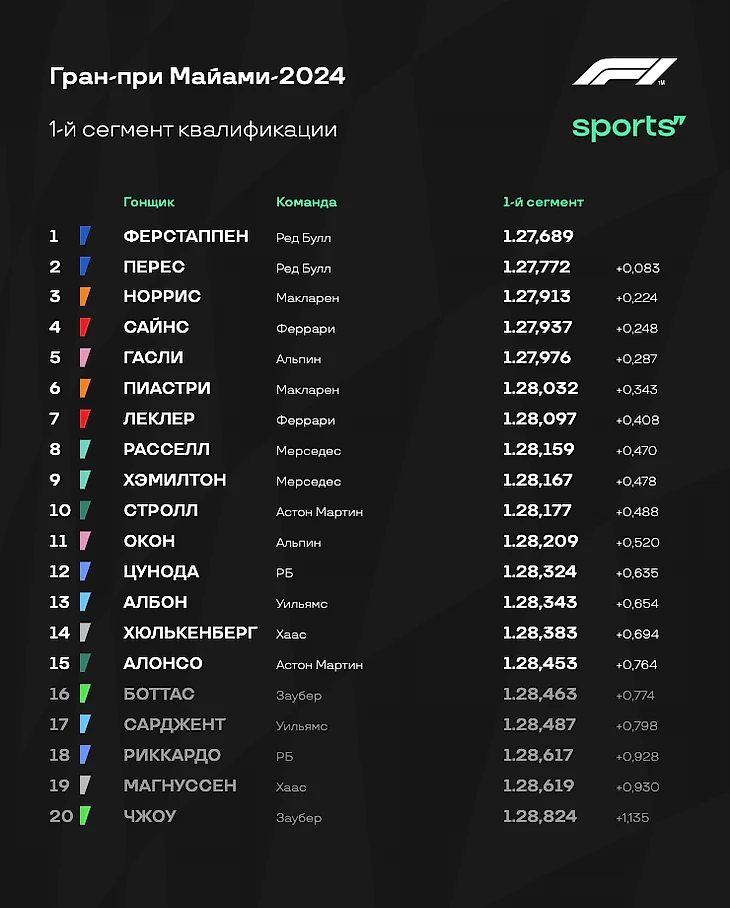 Спасибо, что были с нами, но далеко не уходите! Сегодня нас ждет еще одна сессия - квалификация непосредственно к Гран-при Майами. Начало - в 23:00! До встречи!