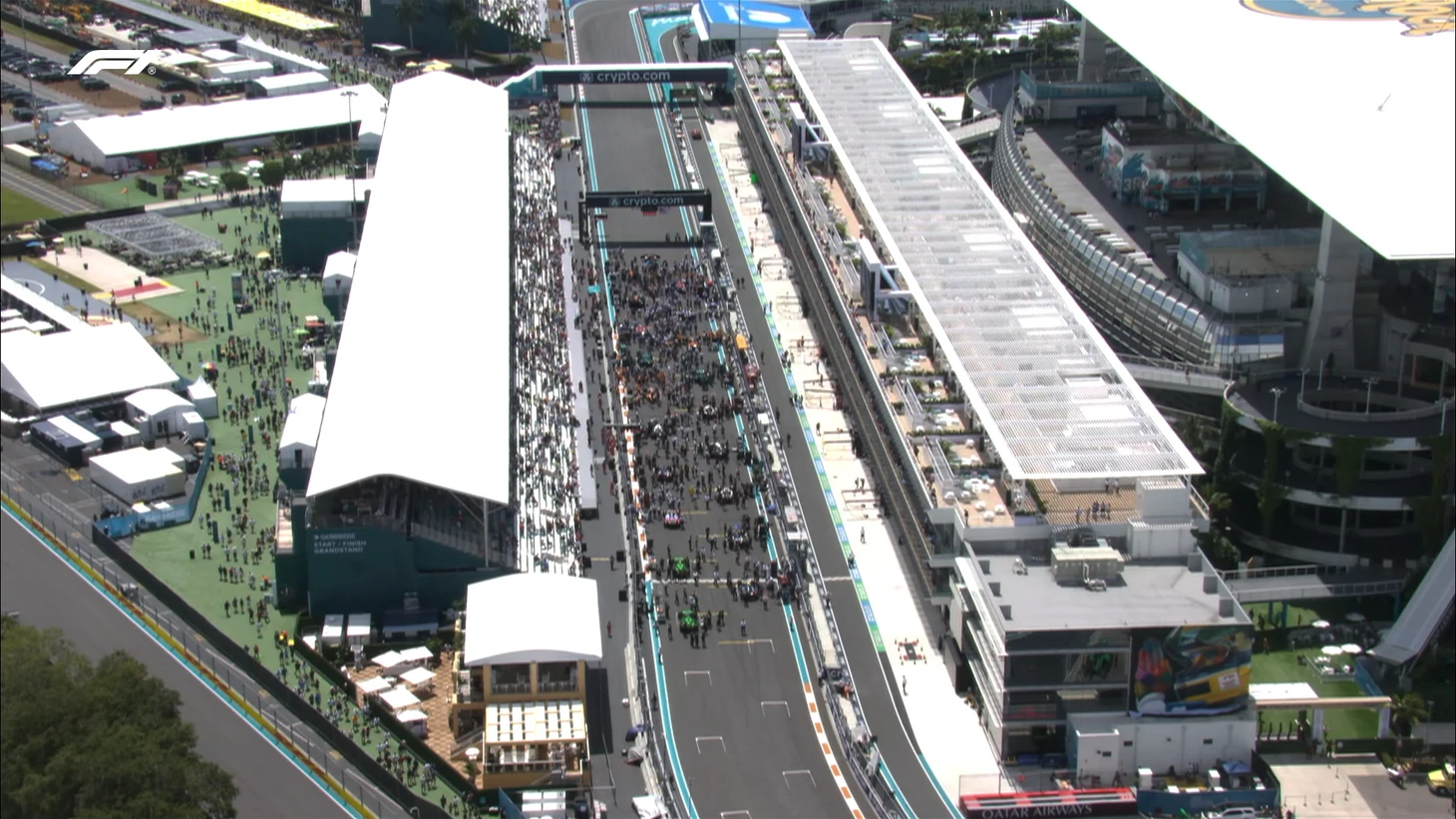 Пилоты отправились на прогревочный круг и скоро начнут выстраиваться на стартовой решетке. Все готово к началу спринта в Майами.