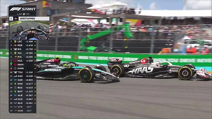 Надо отметить и пилотов «Хааса». Хюлькенберг и Магнуссен забрались довольно высоко и пока успешно сдерживают Хэмилтона! Рассел же вообще отвалился на 14-е место - для «Мерседеса» спринт пока складывается не лучшим образом.