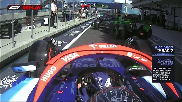 Мы чуть не стали свидетелями еще одного столкновения на пит-лейн - на этот раз в «Заубере» выпустили Чжоу под колеса Риккардо. Дэн был не очень доволен.